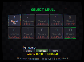 - 10 Story Levels — Each with unique map layouts, core positions, and portal configurations. Terminal-style narrative briefings set the tone before each mission.